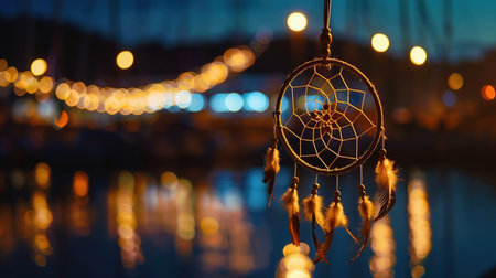 Soft Focus Dream Catcher. Dreamcatcher over harbor lights