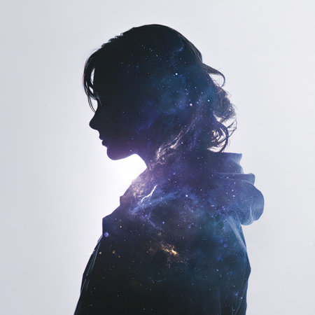 Silhouette of a woman in space with stars and nebula