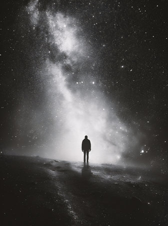 Generative AI : Man looking at the stars Alone man looking at starry sky Night sky