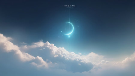 A crescent moon shines brightly in a dreamy sky.