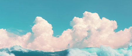 Fluffy white clouds float peacefully in a serene blue sky above ocean waves