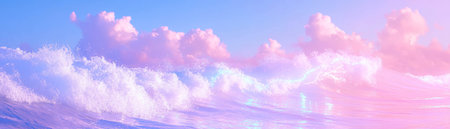 A mesmerizing scene of foamy ocean waves gently rolling toward the shoreline, illuminated by warm sunlight, showcasing natures rhythm, fluidity, and timeless allure in a harmonious seaside