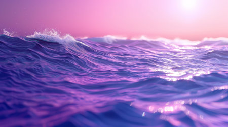 This is a 3D render of an abstract ultraviolet background with ocean water and bright light, suitable for presenting any product