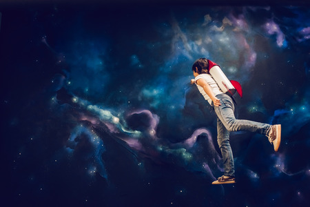 Conceptual creative artwork. Ideas, inspirations, imagintaions. Surrealism. Concept of astronautics, dreams, astronomy, art, Day of Human Space Flight