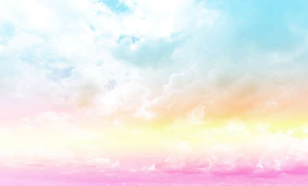 beauty sweet pastel soft yellow pink with fluffy clouds on sky. multi color rainbow image. abstract fantasy growing light