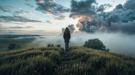 standing on a mountain, enjoying the sunset