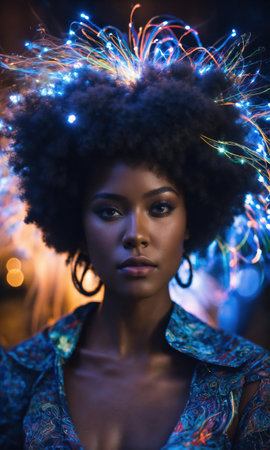 portrait of futuristic african american woman in neon lighting
