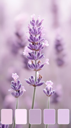 A serene composition of soft lavender textures paired with delicate flowers, perfect for creating calming and elegant design projects or backgrounds.