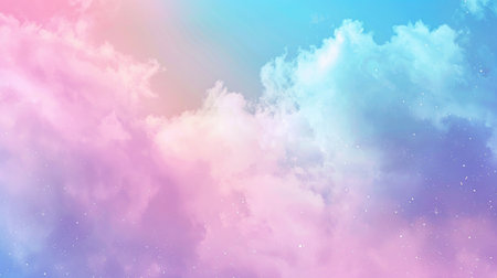A magical and serene sky filled with soft pastel clouds in pink, purple, and blue hues, adorned with tiny sparkling stars, creating a whimsical backdrop.