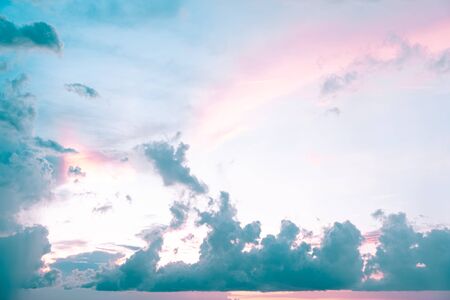Beautiful sky and clouds in pastel tones. Fluffy soft background in vintage style for graphic design or wallpaper. Colorful natural in the romantic love concept.