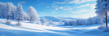 Blue And White Winter Landscape Winter Snowy. Panoramic Banner