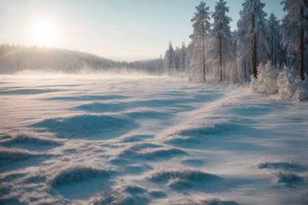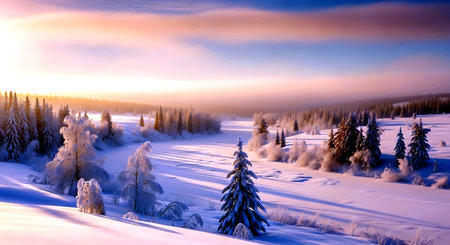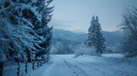 Snowy winter landscape. Immerse yourself in the peaceful charm of a breathtaking winter landscape captured beautifully.