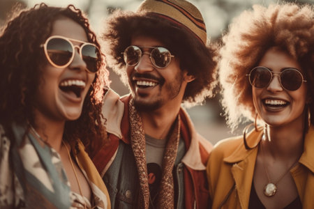 Three women stand together, their faces glowing in soft natural light, capturing unity and beauty. A portrait that speaks volumes about connection and diversity. Generated A.I.