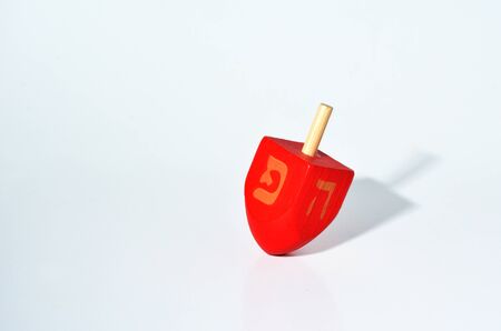 One Red Dreidel (sevivon) spin. It is a four-sided spinning top, played with during the Jewish holiday of Hanukkah. Holiday concept with copy space