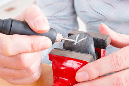 Macro shot. Craft jewelery making with professional tools. A handmade jeweler process, manufacture of jewellery.