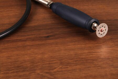 Engraver in hand on the desktop background close up