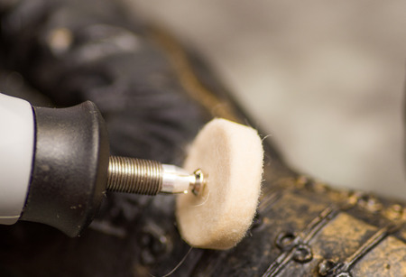 Silver ring being polished. Taken in the Golden City of Pforzheim, Germany