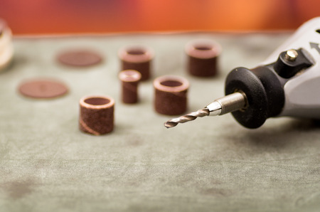 sandpaper of different measures and sizes with dremel machine, on work table