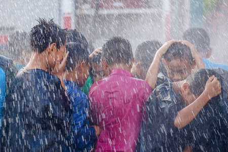 Muadzam Shah, Malaysia - November 24th , 2018 : Childrens wearing traditional malay costume are happy to play the water during the flush event of the circumcision participants.