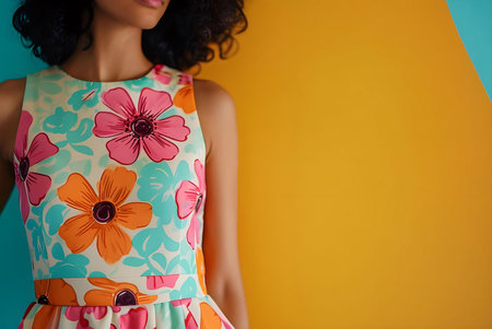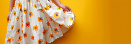 Bright yellow floral dress adds lively colors and beauty, creating a cheerful and vibrant look