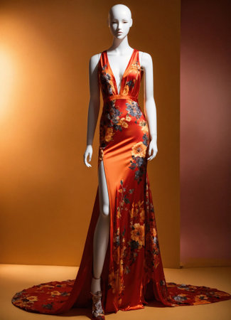 Fashionable evening orange summer dress on a mannequin. ai generative. ai generative.
