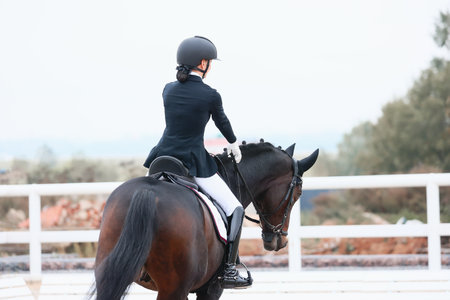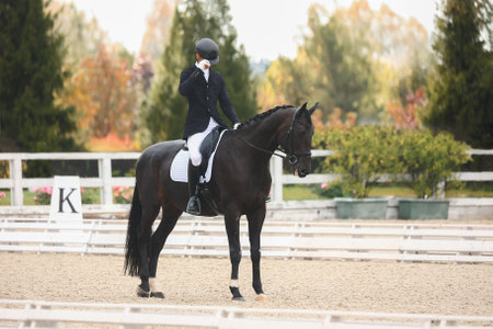 Beautiful sport dressage horse Horse and rider ready to compete