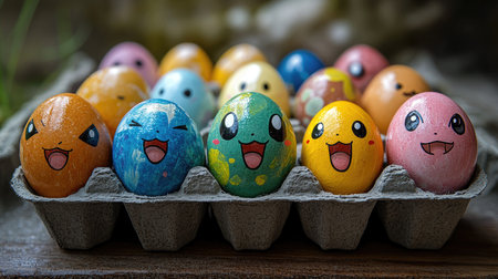 The colorful pokemon easter eggs are arranged in a carton, showcasing a fun and creative way to celebrate the holiday