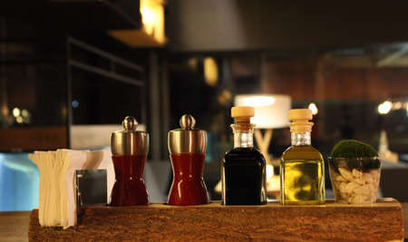 Styling set of spices and seasonings on the restaurant table