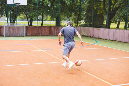 Men's Outdoor Basketball Court Dribbling Run
