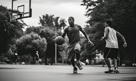 Generative AI : Basketball street player dribbling with ball on the court Streetball training and activity concept