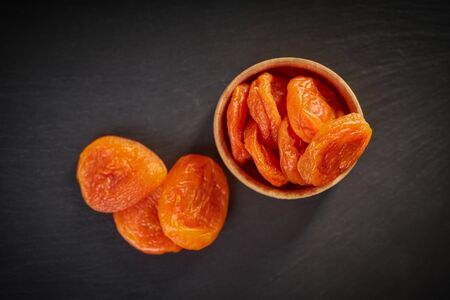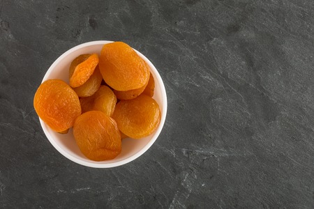 Raw Dry Apricots in a Bowl, top view. Close-up.