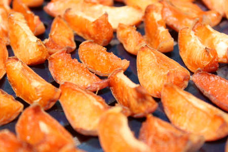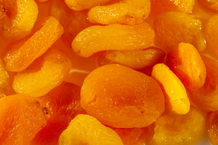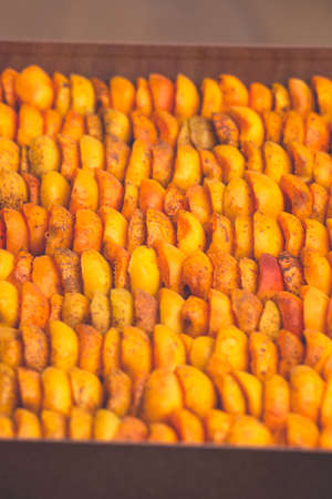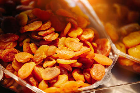 beautiful dried apricots using chemical reagents to enhance the color of dried fruits, close-up of traditional sweets