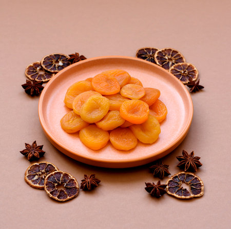 Dried fresh apricot harvested fruit tree as part of a healthy meal