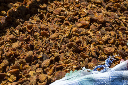 beautiful dried apricots without the use of chemical reagents to improve the color of dried fruits, close - up of traditional sweets natural drying