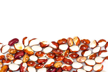 Dry beans scattered on a white background. Top view. Copy, empty space for text.