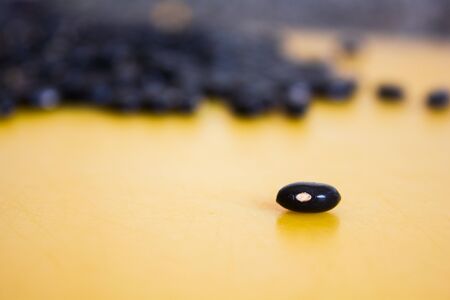 Uncooked and traditional brown and white beans on top of a yellow table serving as background