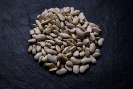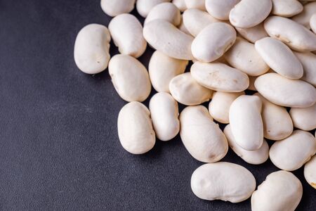 White beans on black background. Food vegan, vegetarian. Healthy food