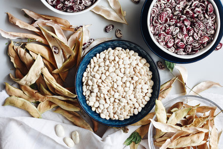 Dry beans as a background texture. Top view. Copy, empty space for text.