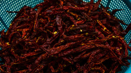 Spicy chili-Bright red dried chillies In the basket