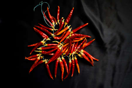 Dried red hot chilli pepper on black background