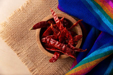 dried hot red chilies on brown texture