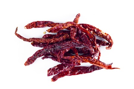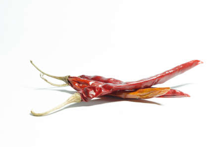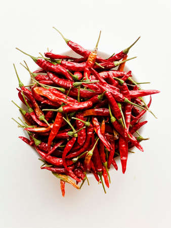 Dried red chili on white background. Usually use in spicy cooking or spicy taste.