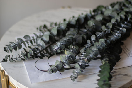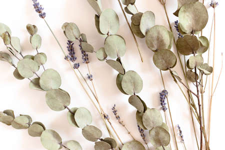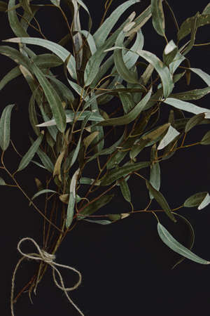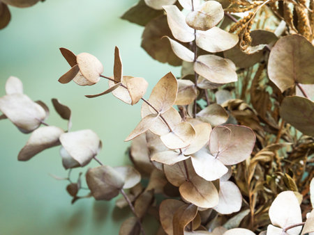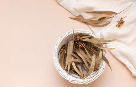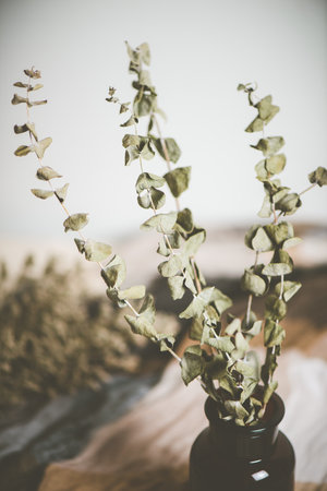 Dried Eucalyptus branches and leaves. Home decoration concept.