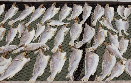 Dry fish of hanging at sea with sunlight.