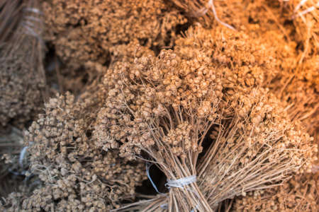 Dry bouquet. Close-up image of dried flowers in a bouquet. Life and death concept. Withered flower background