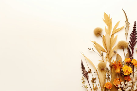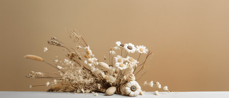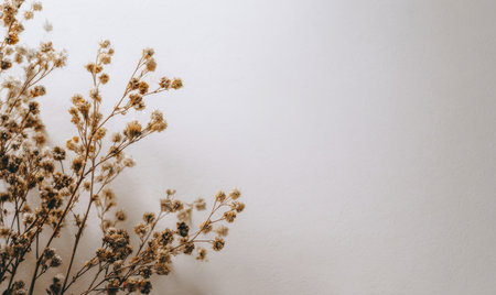 Dried Flowers Still Life White Flora beautifully styled with abundant empty copy space