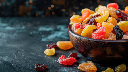 a dried fruit salad captured in a lifelike image, offering lots of empty space for text or branding in your promotional materials