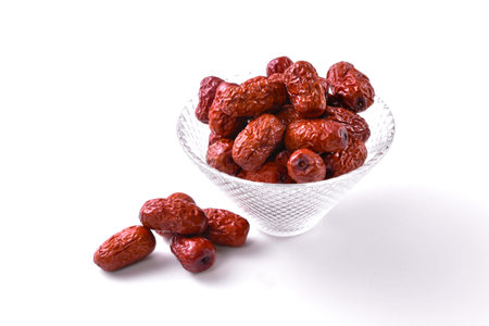 Dried jujube fruits in glass bowl isolated on white background