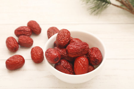 Dried Jujube, Chinese dried red date fruits in a bowl