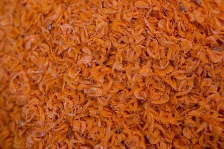 close up of small dried shrimp for background, preservation food